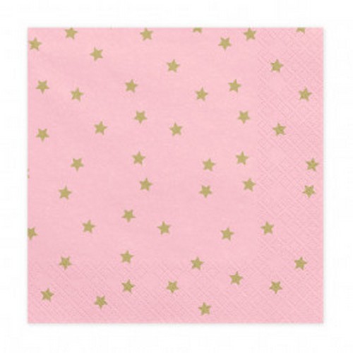 Guardanapos Rosa Claro Estrelas Douradas 20un